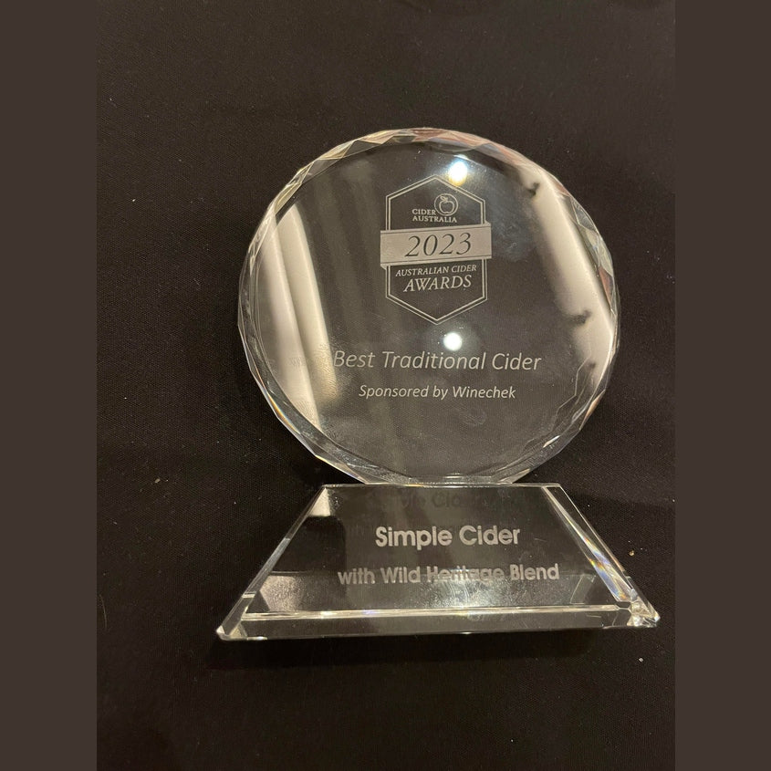 Winner of best traditional cider in Australia at the 2023 National Cider Awards. 750ml bottle 8.5% our award winning Wild Heritage Cider is a celebration of tradition and terroir, using handpicked cider apples from the fertile orchards of Tasmania's Huon Valley.